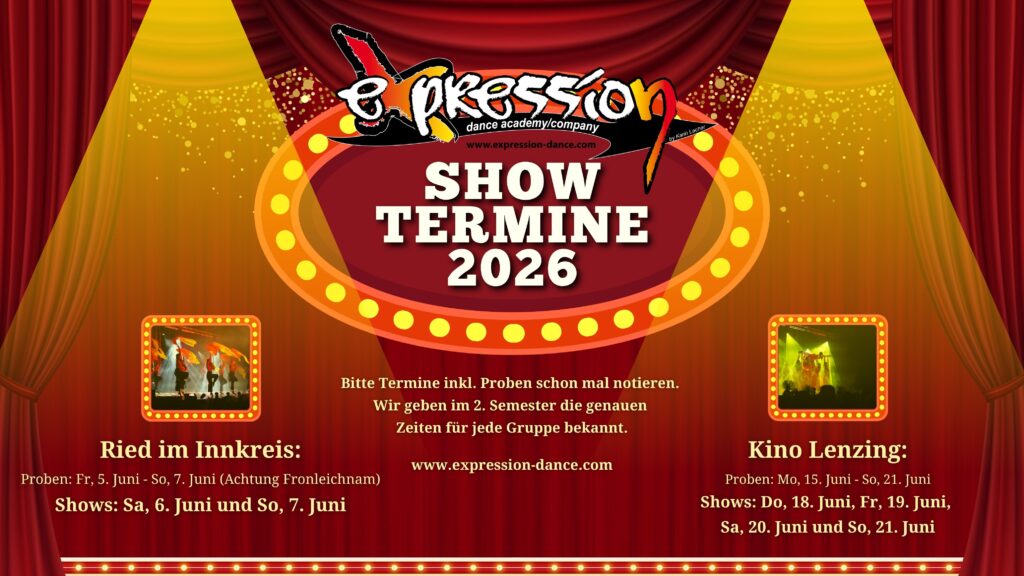- Tickets erhältlich ab April bei allen Expression Dance Coaches oder unter office@expression-dance.com